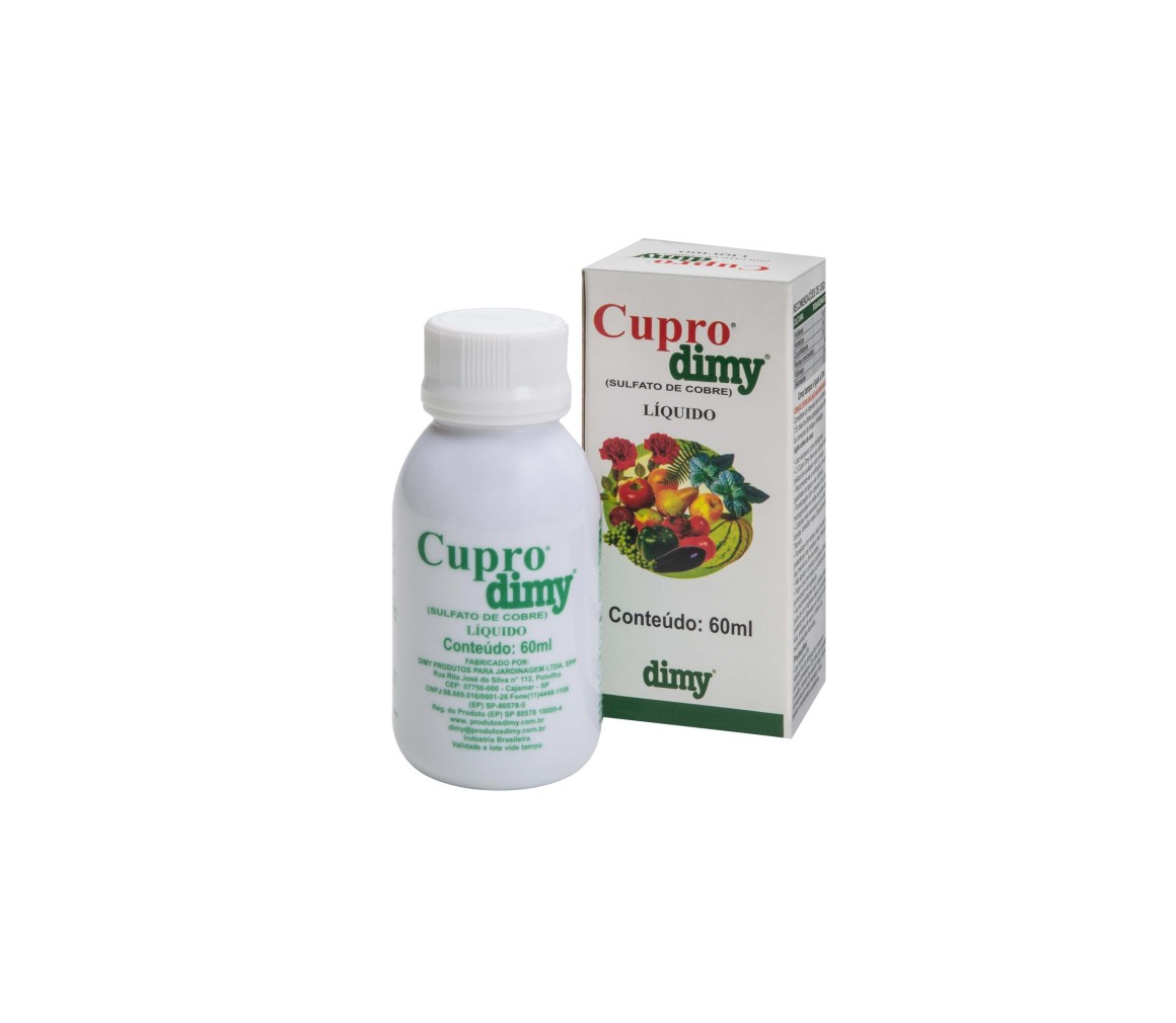 Cupro Dimy Líquido é um produto da linha Dimy, que possui dupla finalidade. É um produto a base de cobre, na forma líquida, que possui ação preventiva contra fungos e ao mesmo tempo nutre a planta com este elemento tão importante para ela.