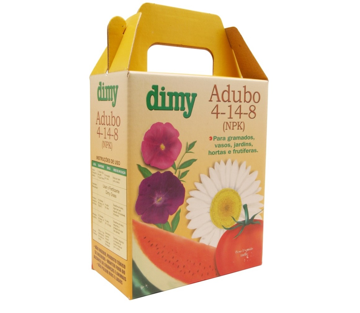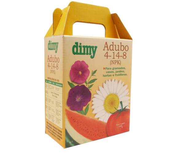 O fertilizante mineral granulado DIMY NPK 04-14-08 , possui em sua composição 04% de nitrogênio , 14% de fósforo e 08% de potássio. É indicado em adubações de plantio, para ser misturado com a terra das covas ou vasos antes de se plantar e também em época de florescimento das plantas pois aumenta a quantidade de flores e frutos.