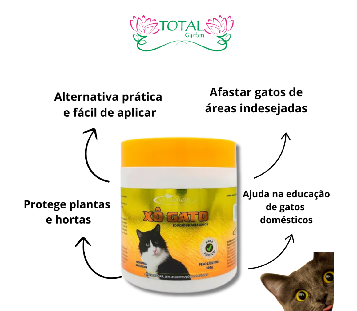Xô Gato granulado repelente por ser um produto atóxico e natural pode ocorrer de não apresentar o efeito desejado de acordo com a sensibilidade de cada animal e também pelo fato de ser aplicado em áreas abertas seu odor característico pode se perder rapidamente pelas condições climáticas.