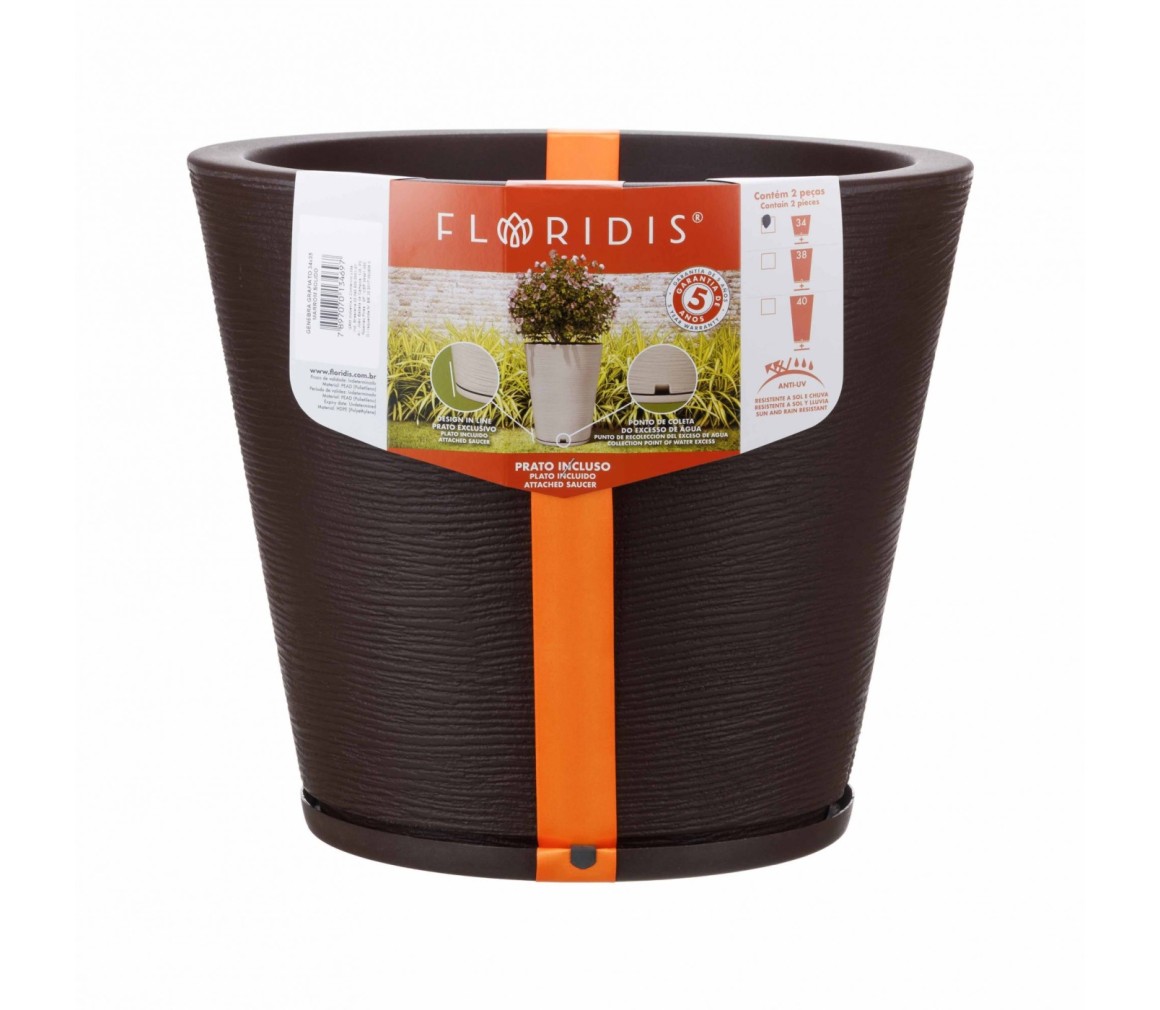 VASO GENEBRA GRAFIATO MARROM STONE EFFECT- 34cm X 35cm - FLORIDIS