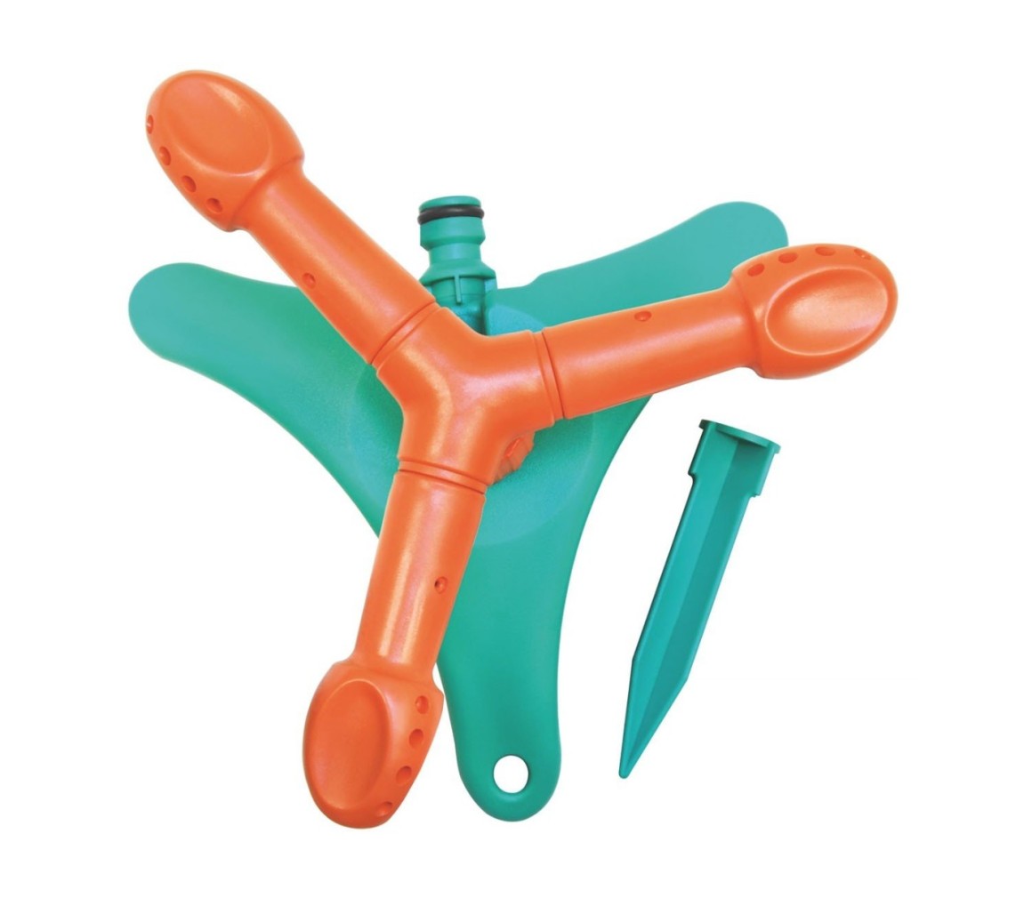 Equipado com 3 braços rotativos em plástico, com terminais ajustáveis para direcionar o jato d'água;